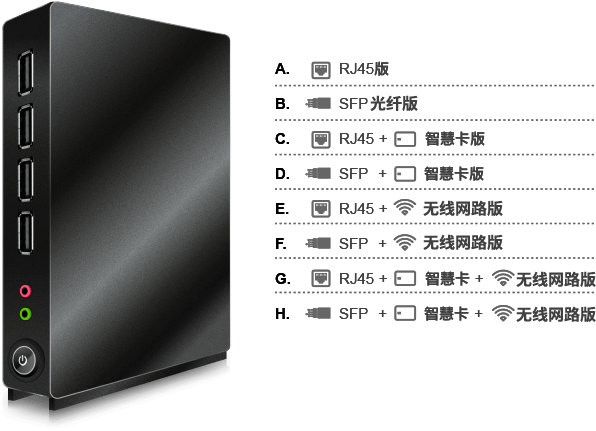 | 产品 | EL2115 Ultra-Thin Client | EL4115 Ultra-Thin Client | RZ2215 Ultra- Thin Client | RZ2225 Thin Client | RZ4415 Thin Client | RZ4425 Thin Client |