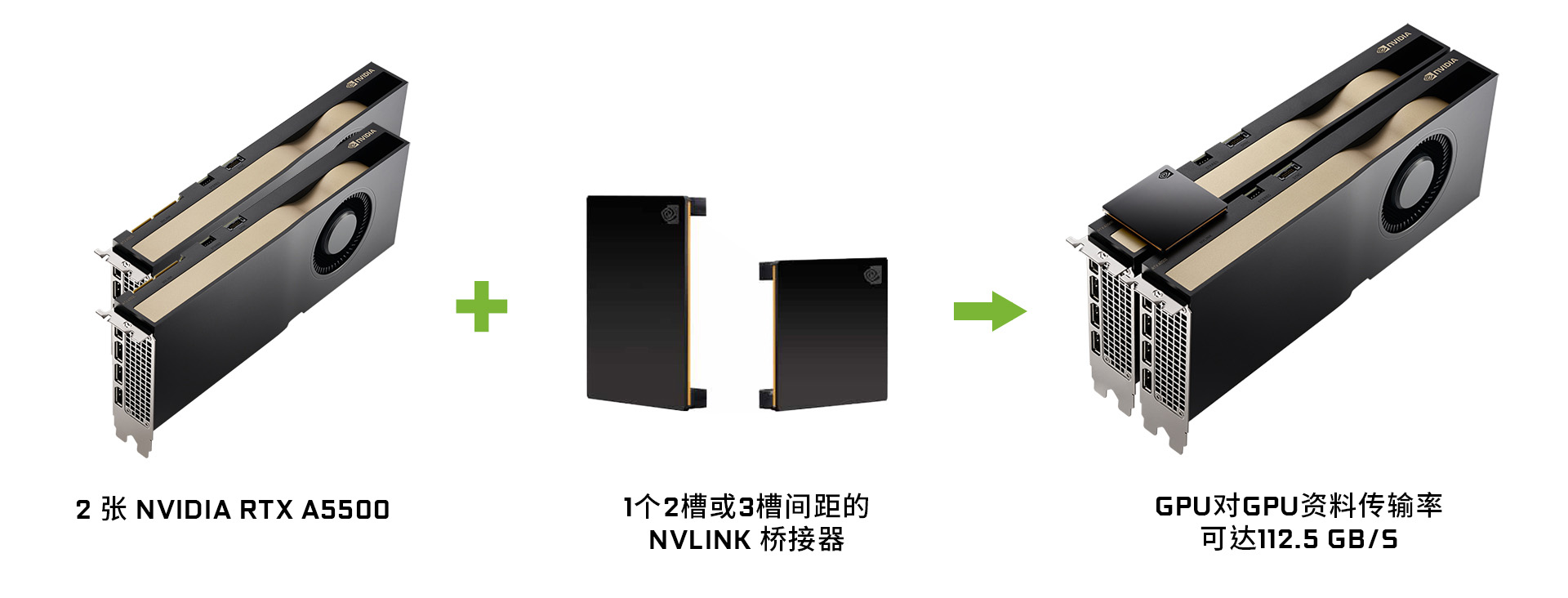 | NVLink | 2-槽位/3-槽位桥接器 可连接两张 RTX A5500  |