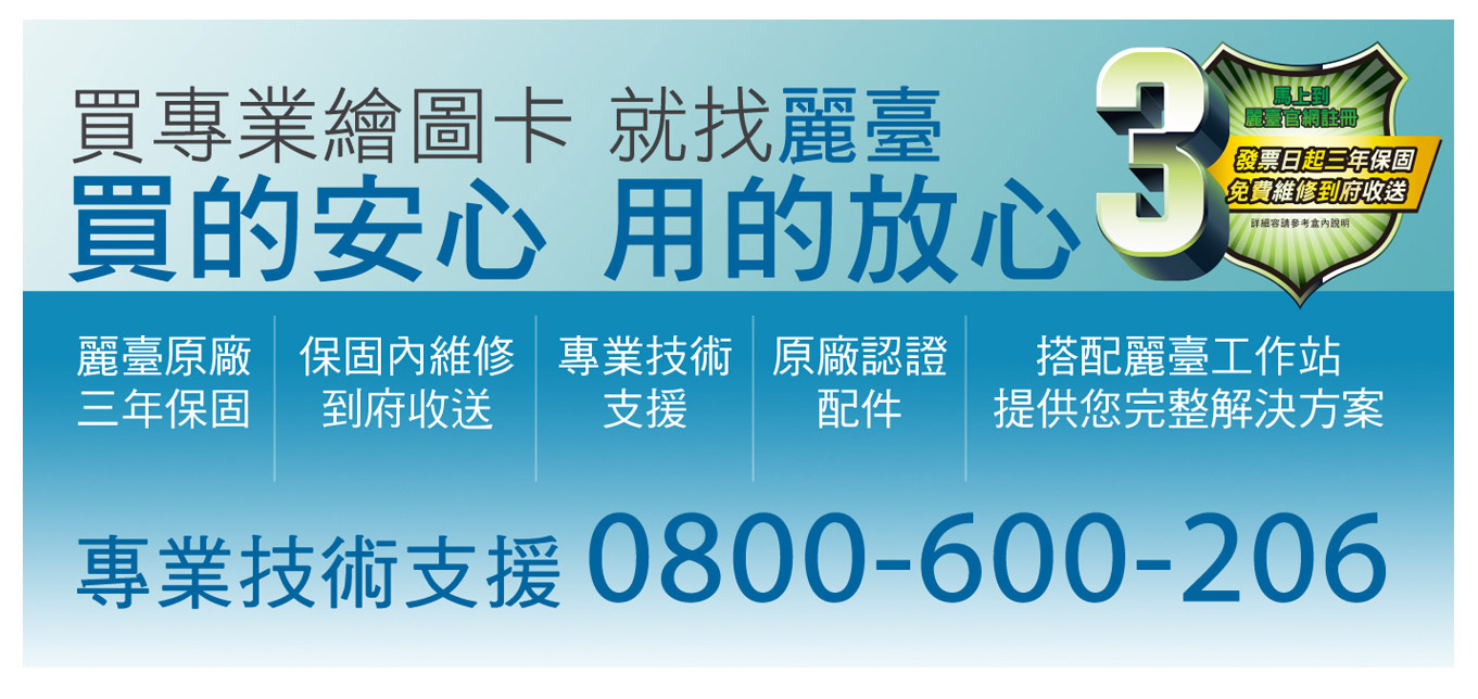 • 本網頁所標示附贈的轉接器、電纜和軟體等資訊僅供參考,麗臺保有調整變動之權利,若有更動恕不另行通知。