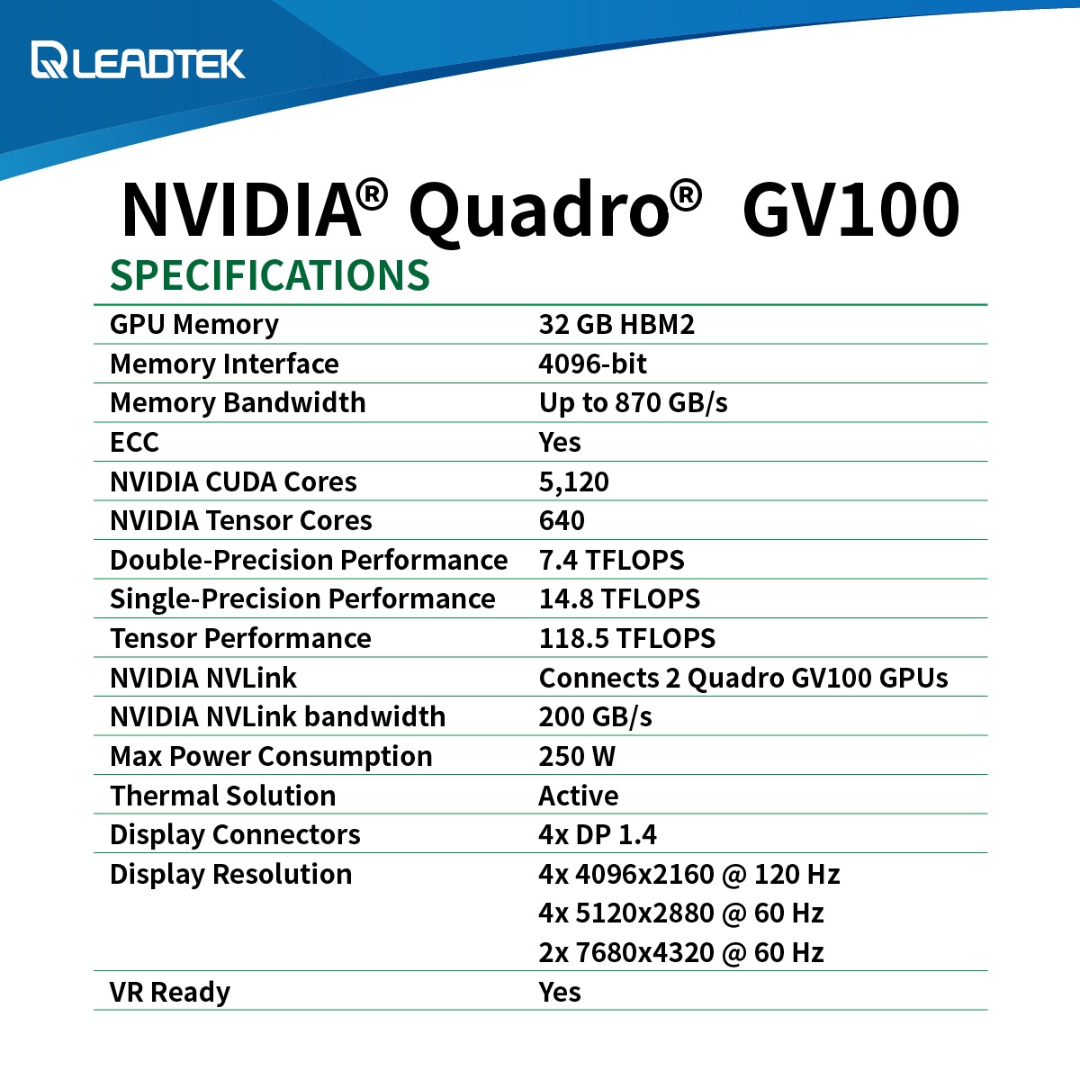 For more Leadtek NVIDIA Quadro GV100 information, please visit Click Here