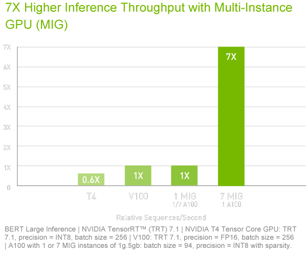 | Multi-instance GPUs | Various instance sizes with up to 7MIGs @5GB |