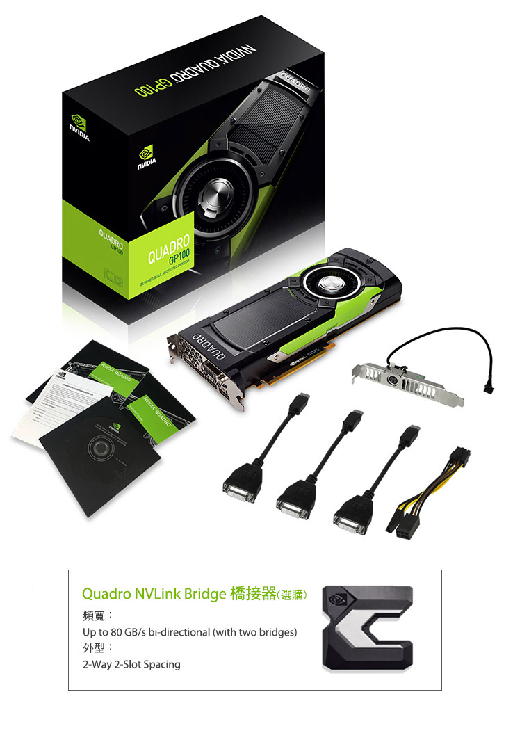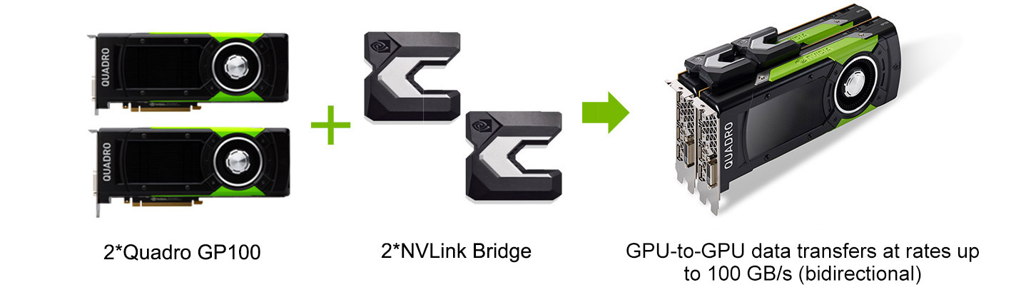 NVLink High Speed InterfaceConnect a pair of Quadro GP100 cards with NVLink to increase the effective memory footprint and scale application performance by enabling GPU-to-GPU data transfers at rates up to 80 GB/s (bidirectional)