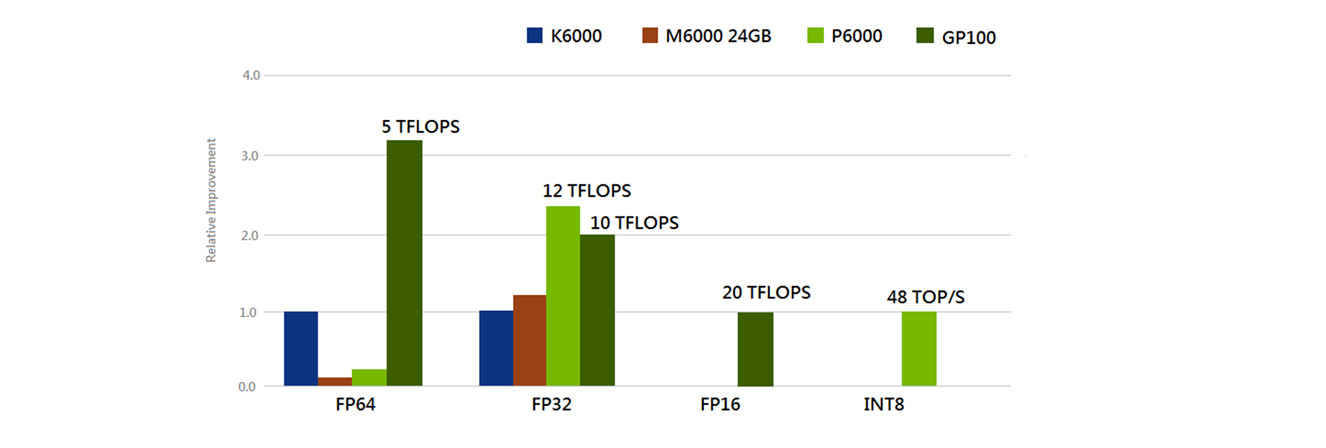 Double the throughput and reduce storage requirements with 16-bit floating point precision computing to enable the training and deployment of larger neural networks.
