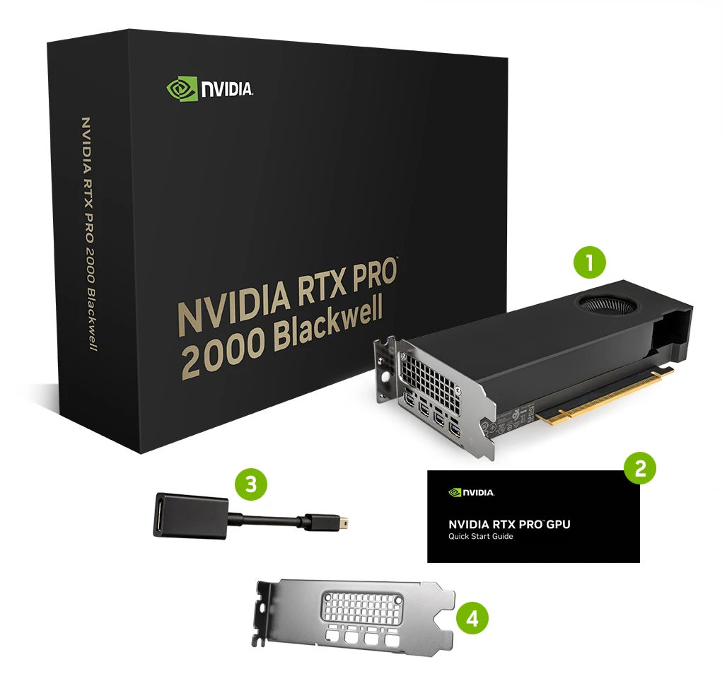 The NVIDIA RTX PRO™ 2000 GPU delivers breakthrough performance in a power-efficient, compact form factor. Unlock accelerated multi-application graphics and AI workloads with next-level neural rendering, 3D performance, and AI capabilities. Equipped with the latest gen Tensor Cores, RT Cores, CUDA Cores, and 16 GB of ultra-fast GDDR7 memory, tackle complex product design, content creation, and engineering workflows while collaborating with desktop AI assistants or running AI inference at the edge. Experience the new standard for mainstream professional performance with enterprise-grade support and major ISV certifications, ensuring reliability for mission-critical projects. Innovate and iterate at unprecedented speeds while future-proofing your desktop with the latest generation of AI-powered small form factor workstations.